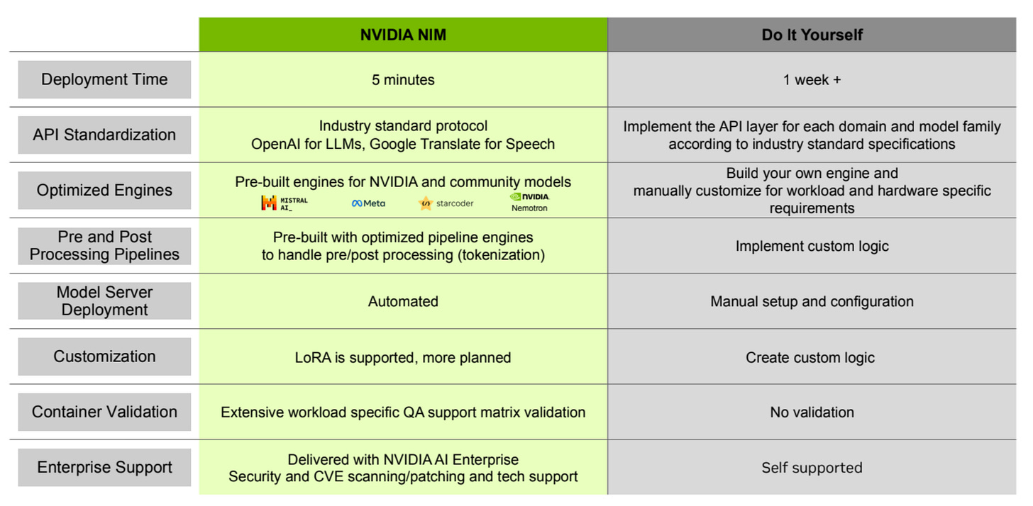 In this section, let’s iterate on a few expert insights I’ve got from talking with some of the people working on NIMs at NVIDIA.