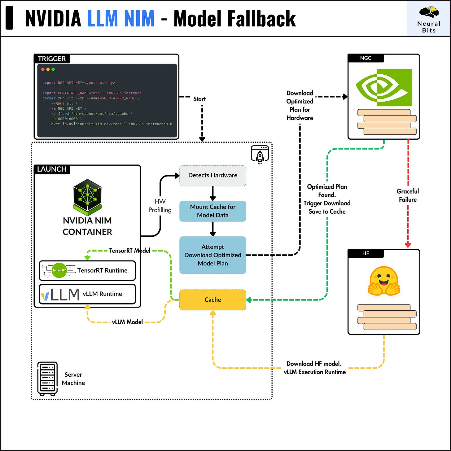 If the TensorRT optimized engine for the specific model, doesn’t exist on NGC - the NIM setup falls back to vLLM and downloads the vLLM profile from the HuggingFace.
