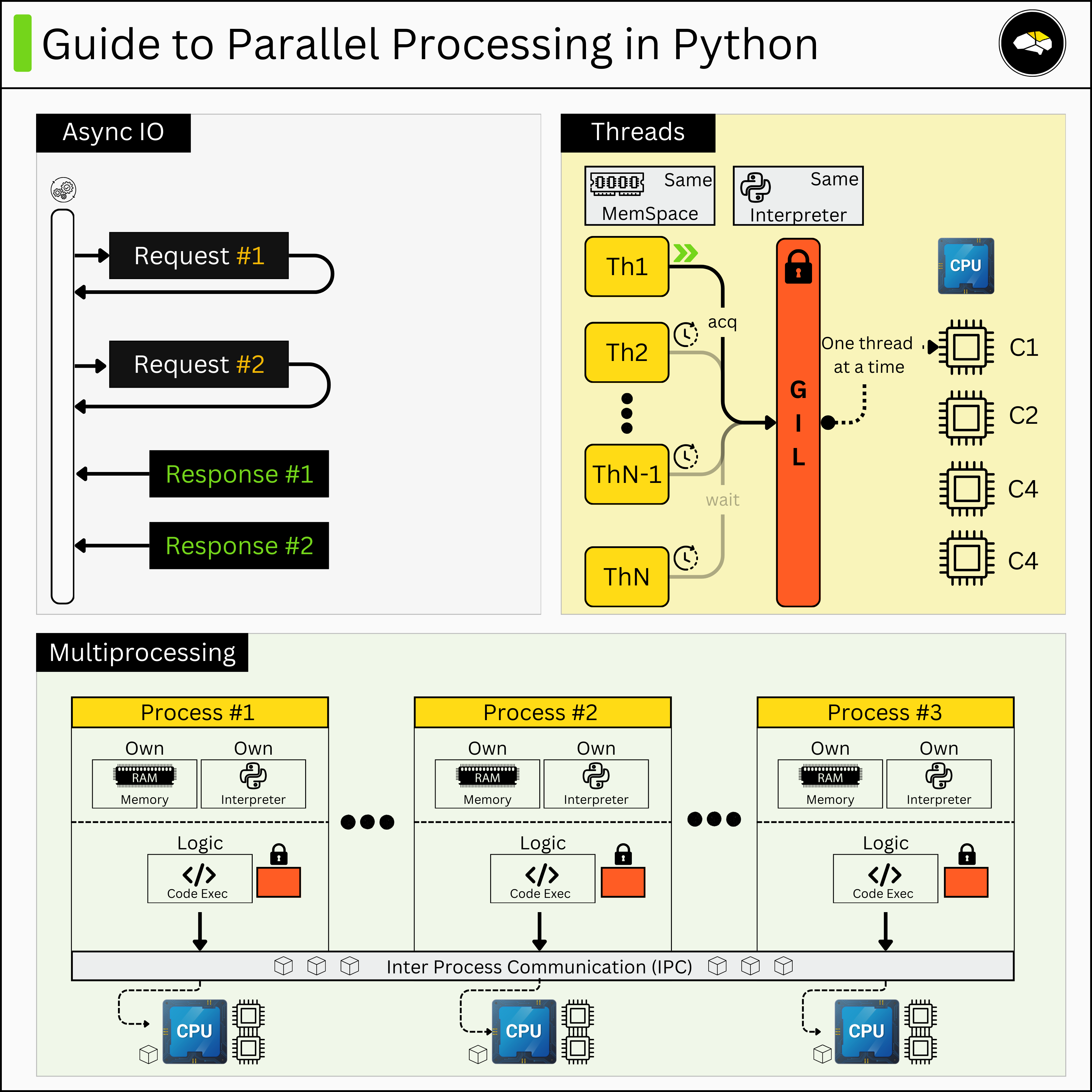 In this article, we’ll focus on how Python handles the concurrency concept, explain the GIL limitation, and go over when and how to use async, multithreading, and multiprocessing with real use cases.