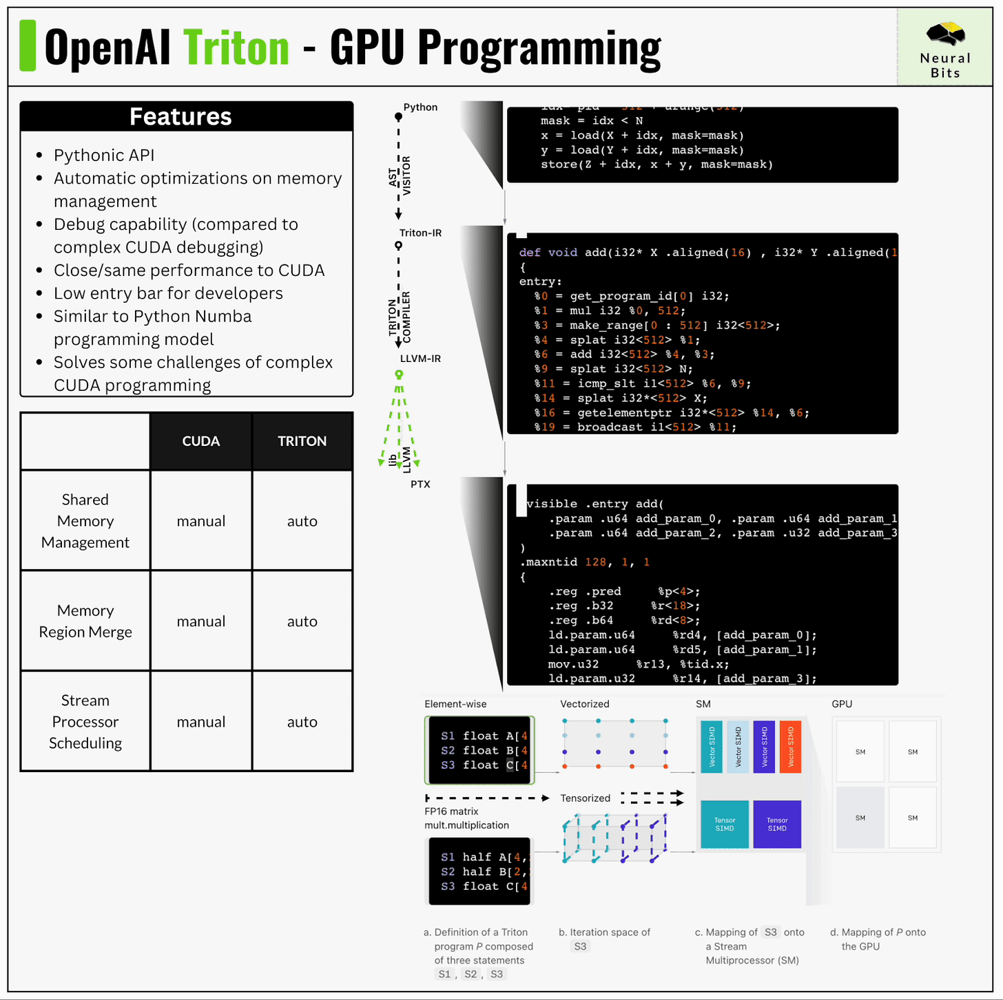 Triton aims to provide a Python-based programming environment for writing compute kernels capable of running at maximum throughput on GPU hardware. Released in 2021 by OpenAI, the ML field has already started to adopt Triton, both at an Industry Level (e.g. PyTorch) and Open Source (e.g. Unsloth [2]).